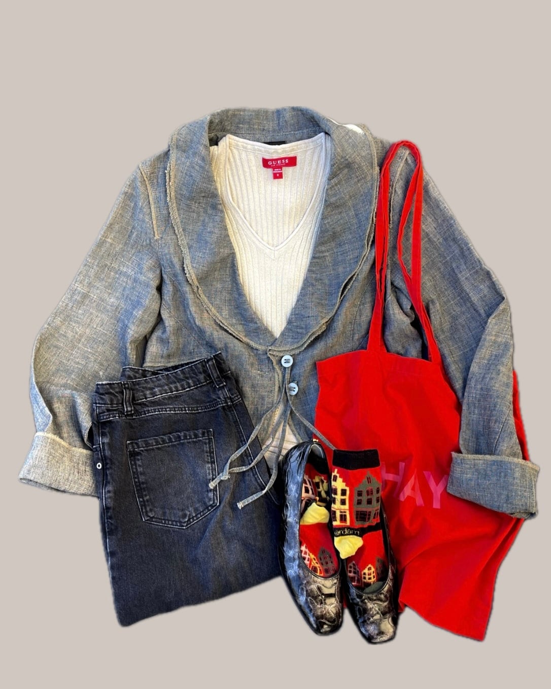 ヴィンテージ感のあるアイテムながら、汚れやヨレのない非常に良好なコンディションも魅力。デニムやスラックス、ワンピースなど様々なスタイルに合わせやすく、長く愛用できる一着です。