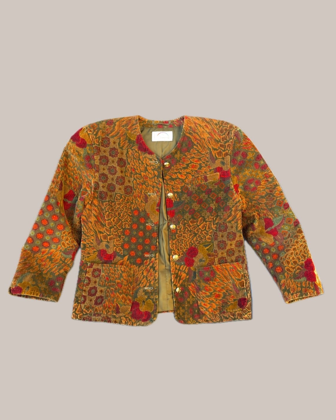 総柄コーデュロイ ノーカラージャケット / Gold Button Design