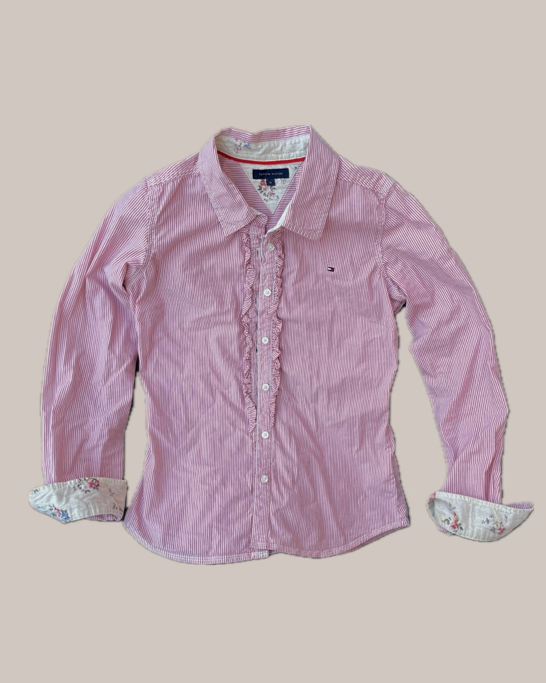 TOMMY HILFIGER フリルデザイン ストライプシャツ / Red & White
