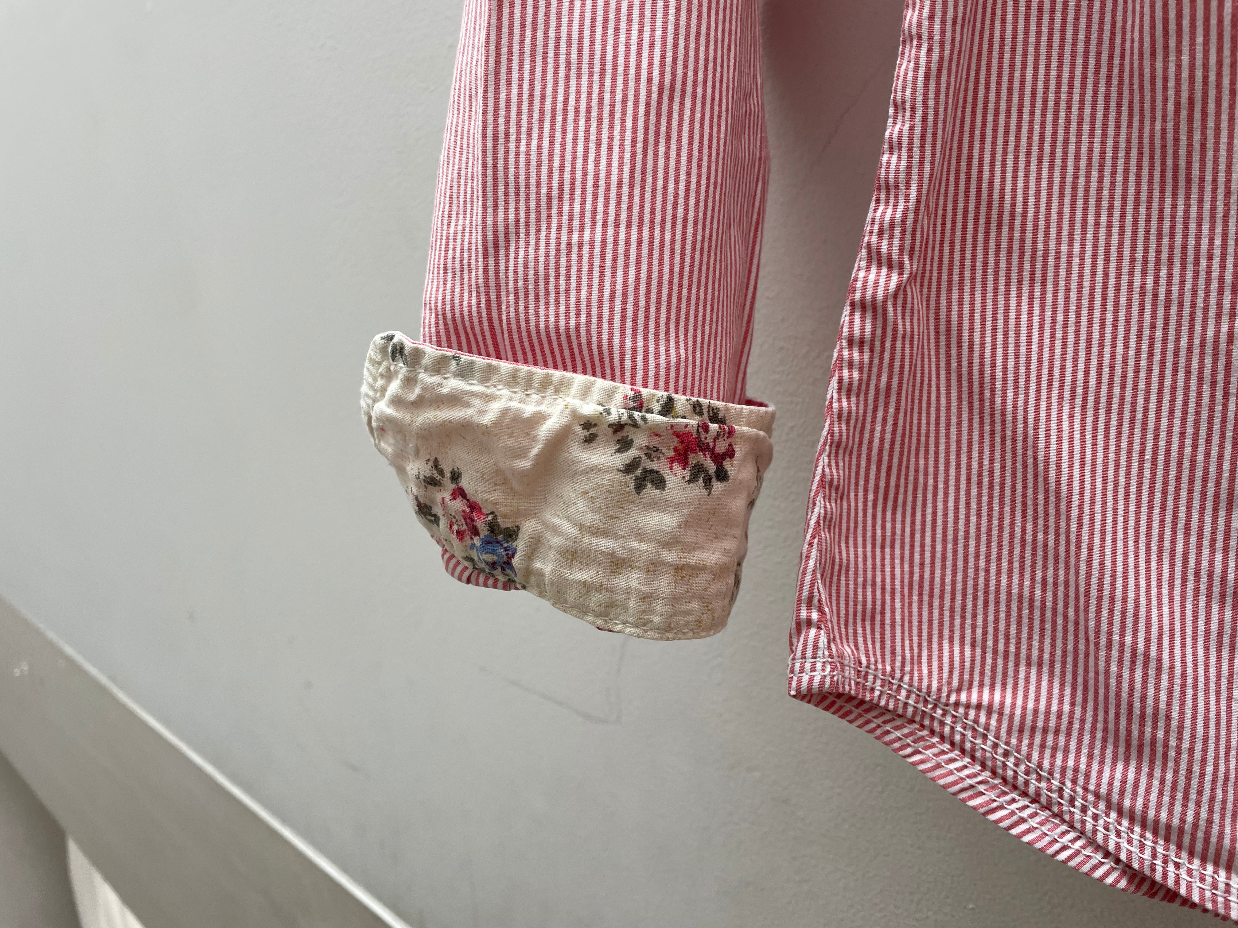 袖の内側にはさりげなく花柄があしらわれており、袖をまくった際にちらりと見えるディテールもポイント。細部までこだわりのあるデザインで、シンプルなコーディネートにも程よいアクセントをプラスしてくれます。