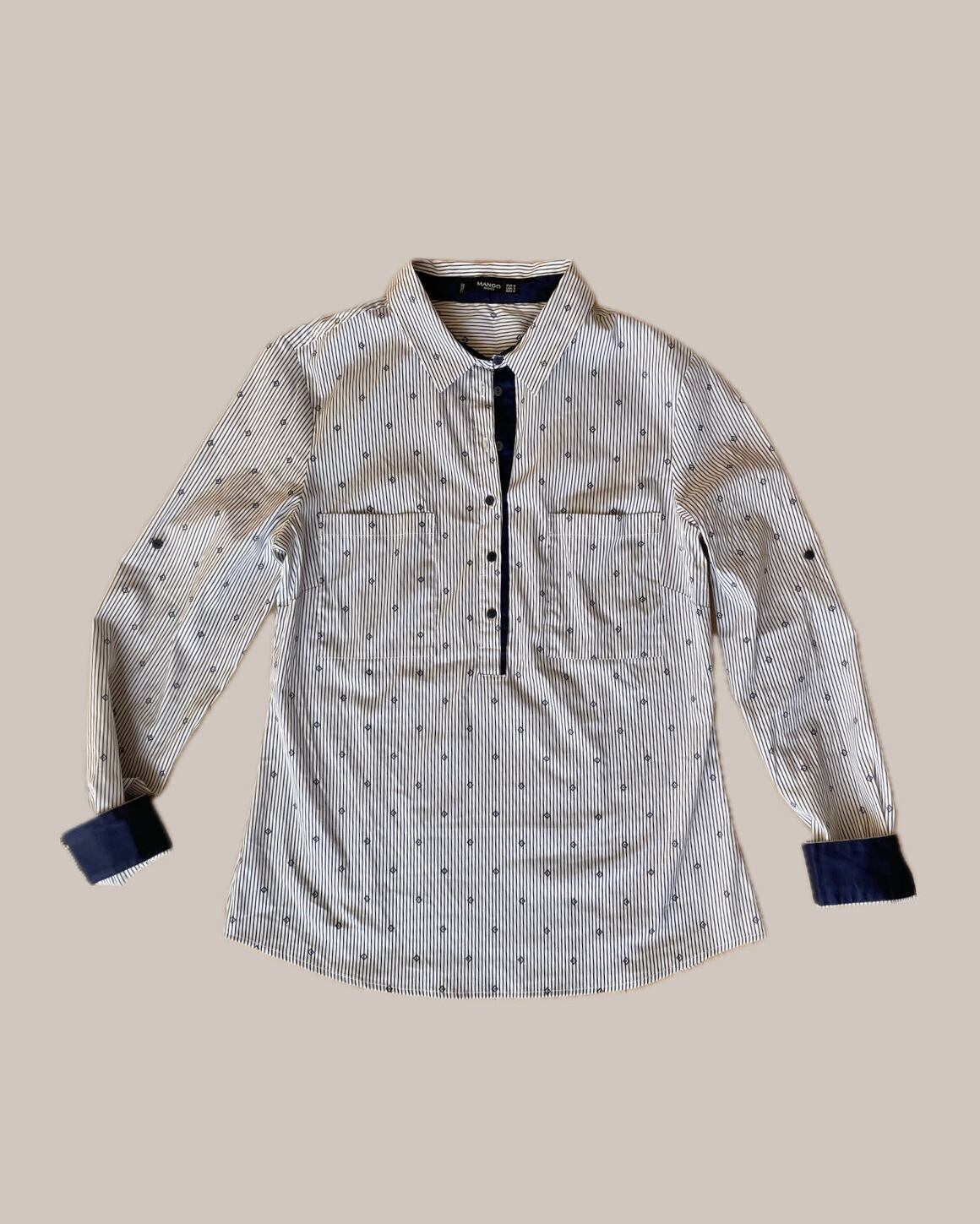 MANGO ストライプパターン デザインシャツ / Navy Detail