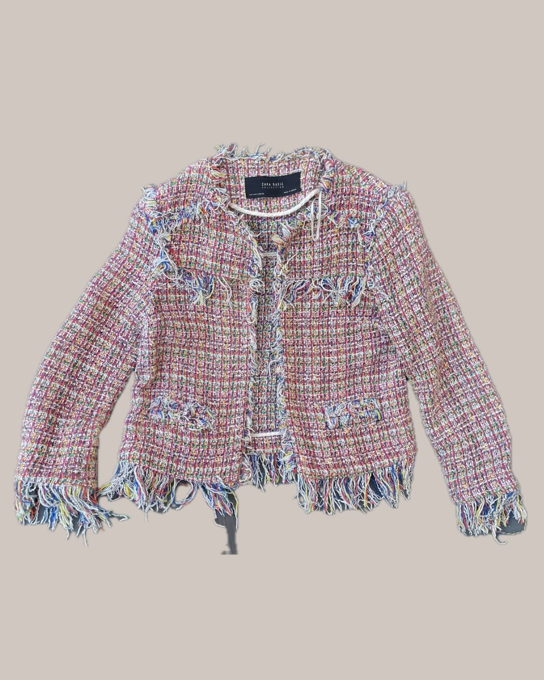 ZARA BASIC カラーツイード フリンジジャケット / Color Tweed Fringe Jacket