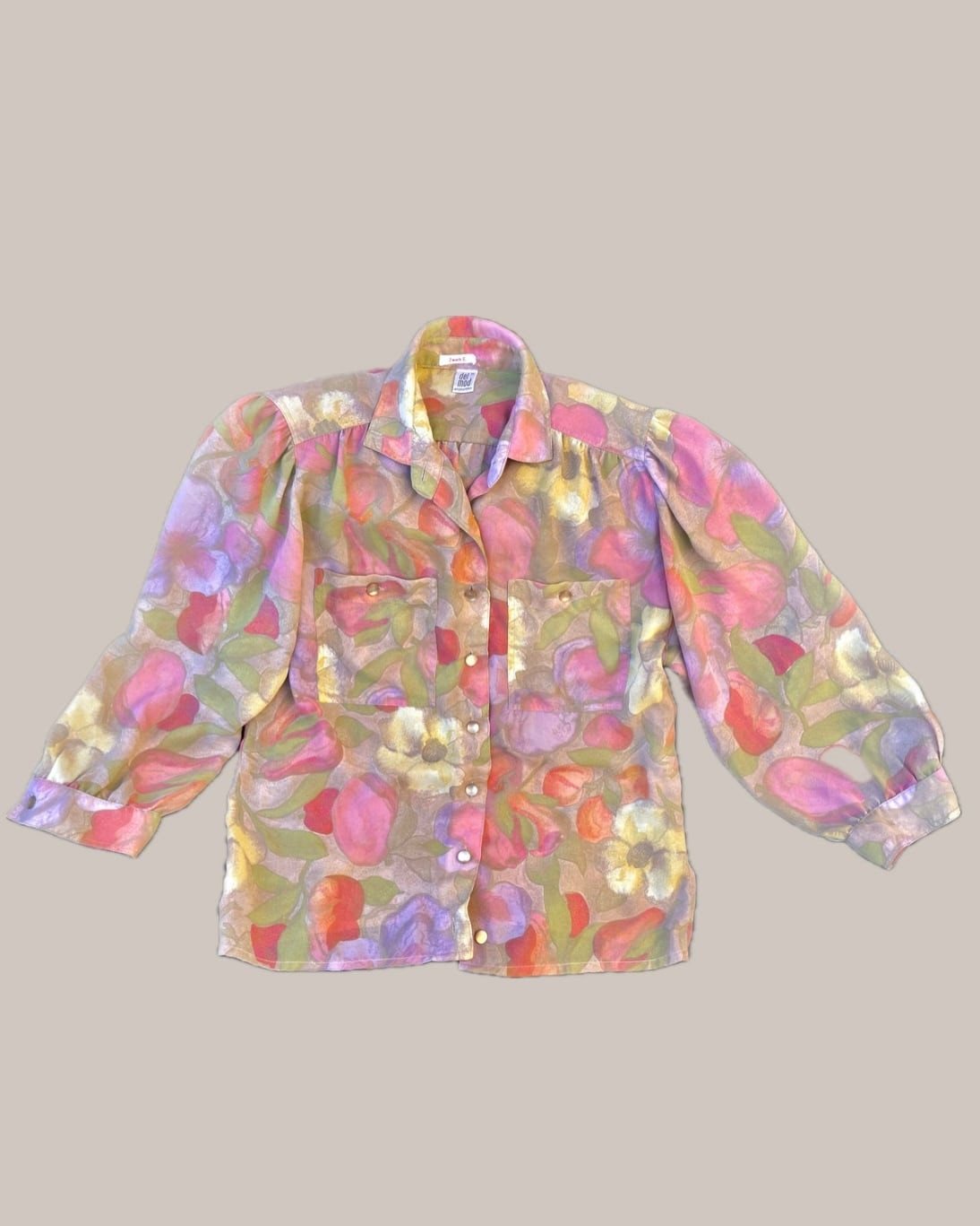 オランダで買い付けた、チューリップモチーフのフラワープリントブラウス。