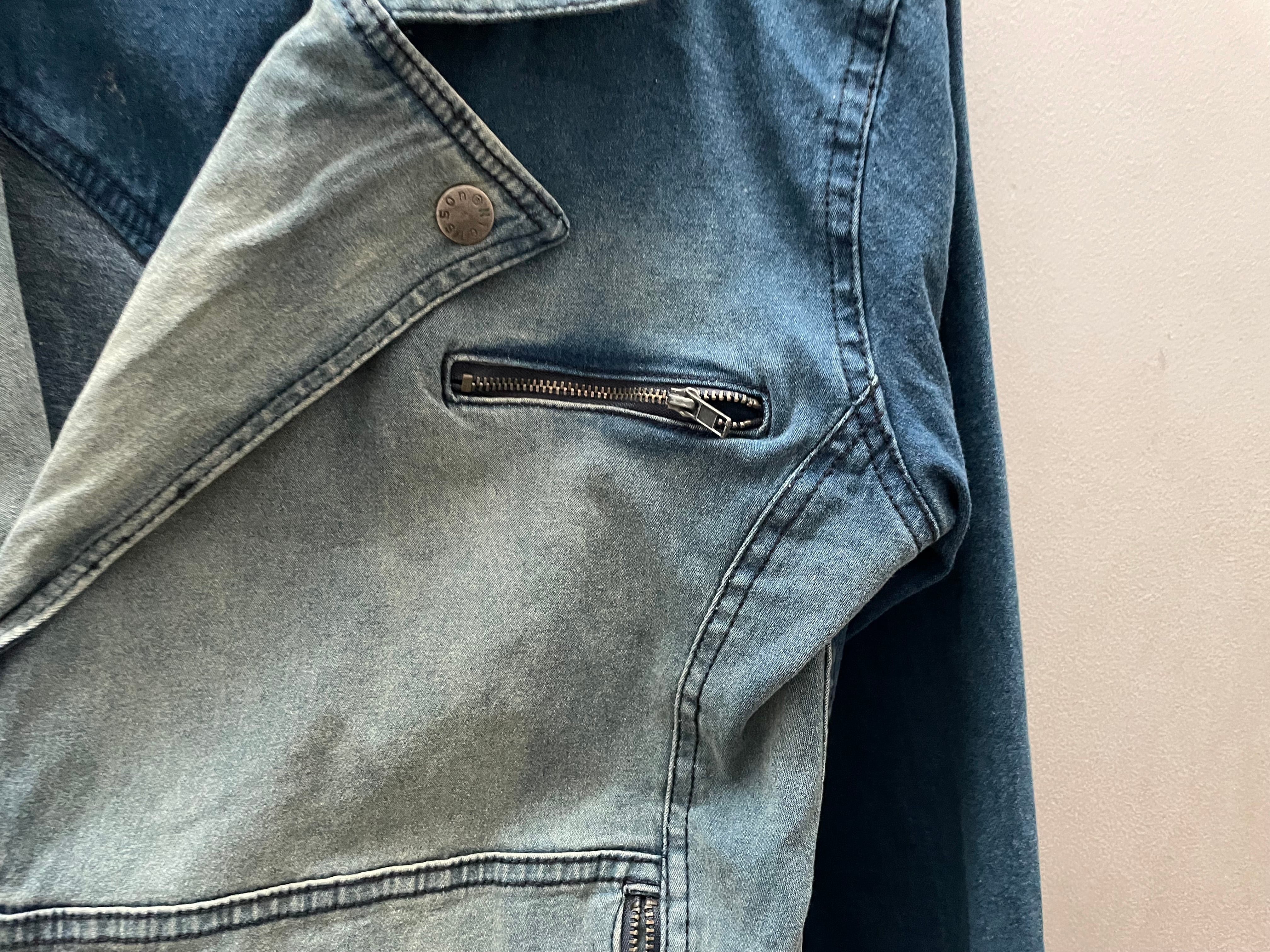 ライダース特有のジップディテールやシルエットに、デニム素材を掛け合わせた珍しいデザインで、ハードすぎず程よくカジュアルに落とし込まれているのが魅力。