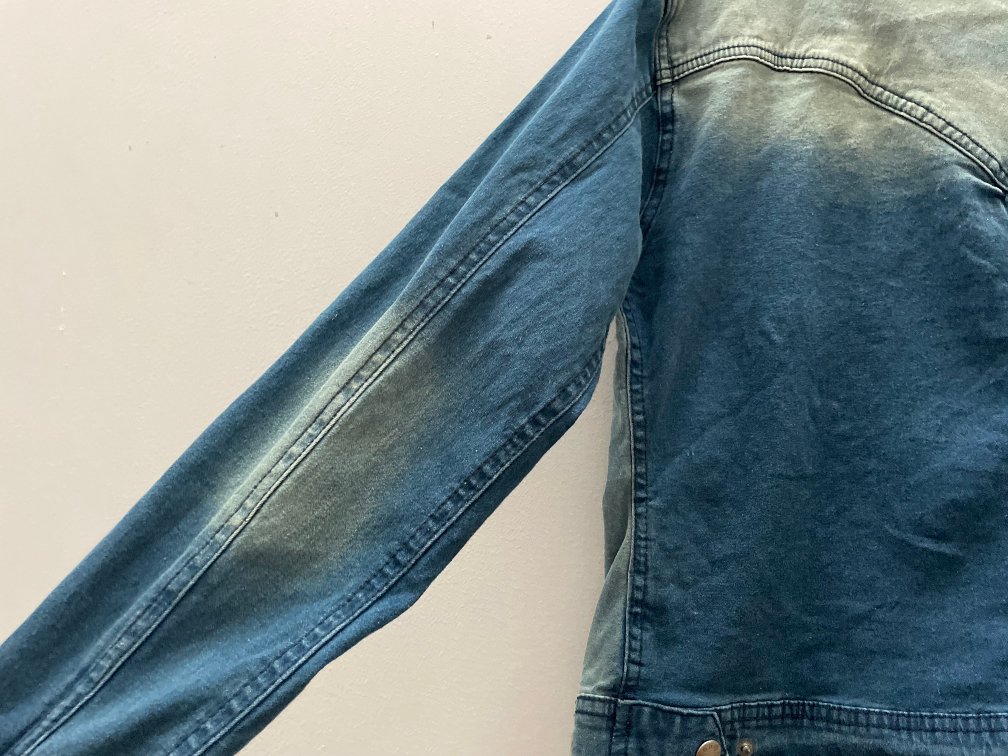 肩やフロント、肘にかけて絶妙に色味を変えることで、立体感と奥行きのある仕上がりになっています。