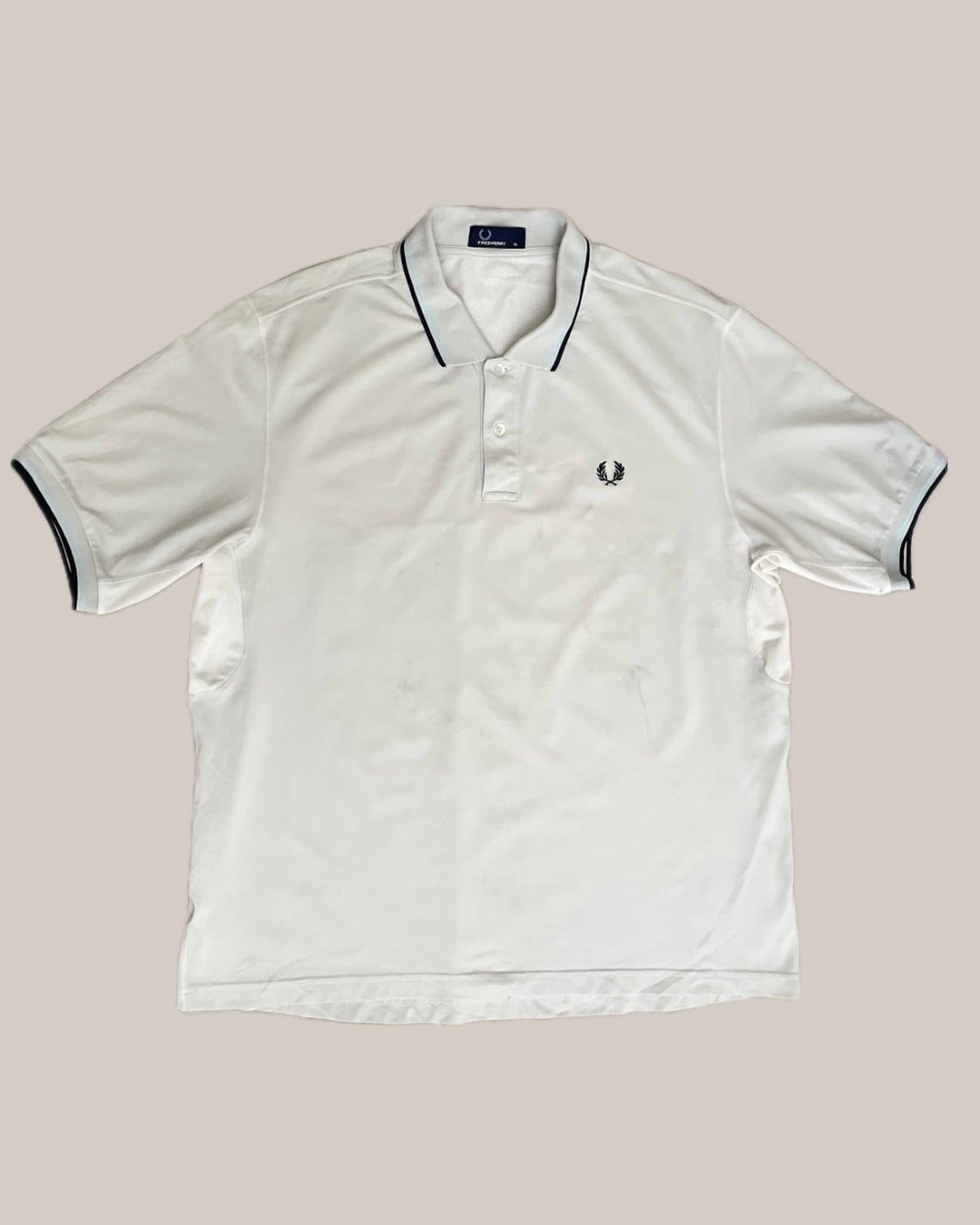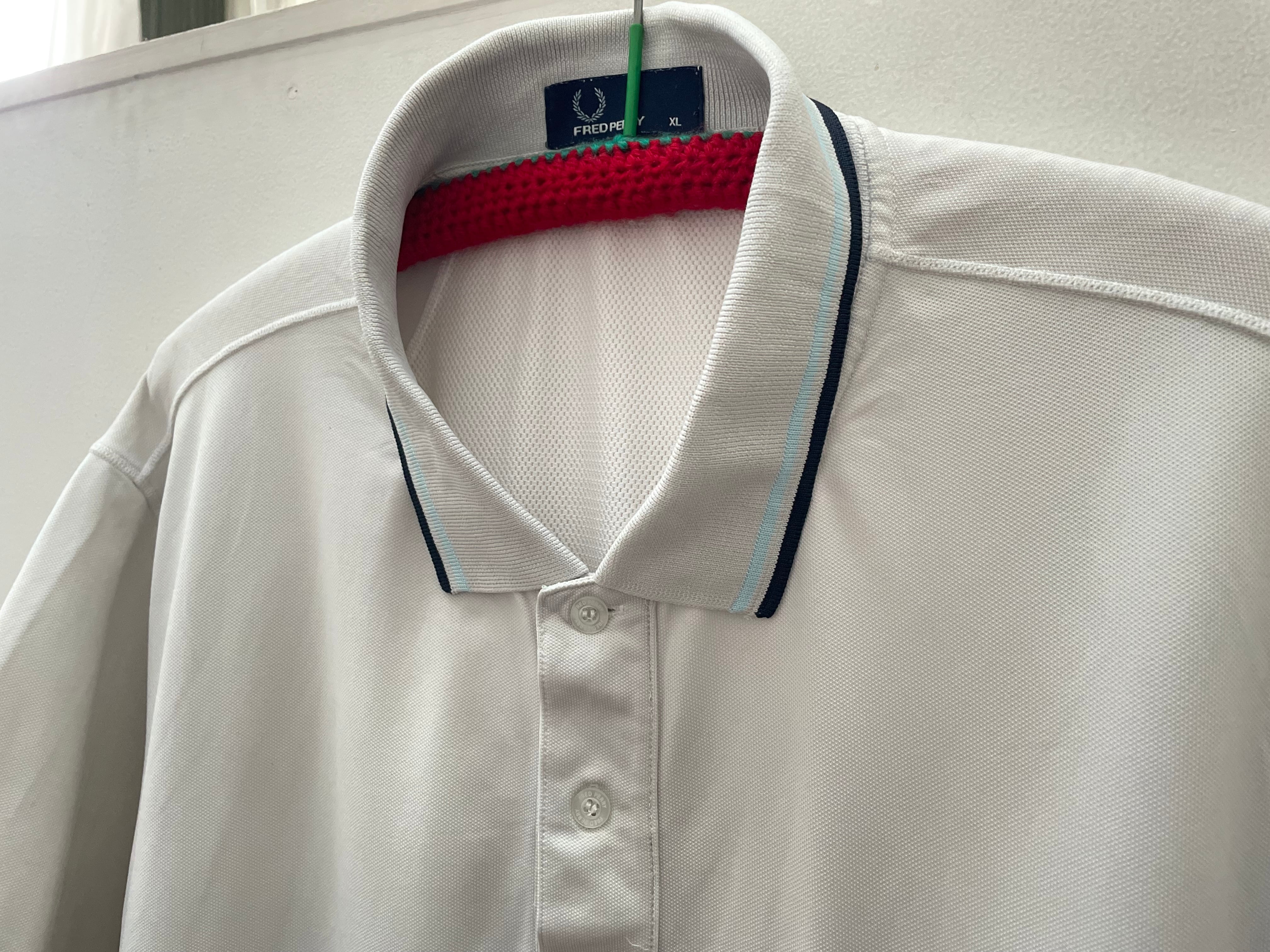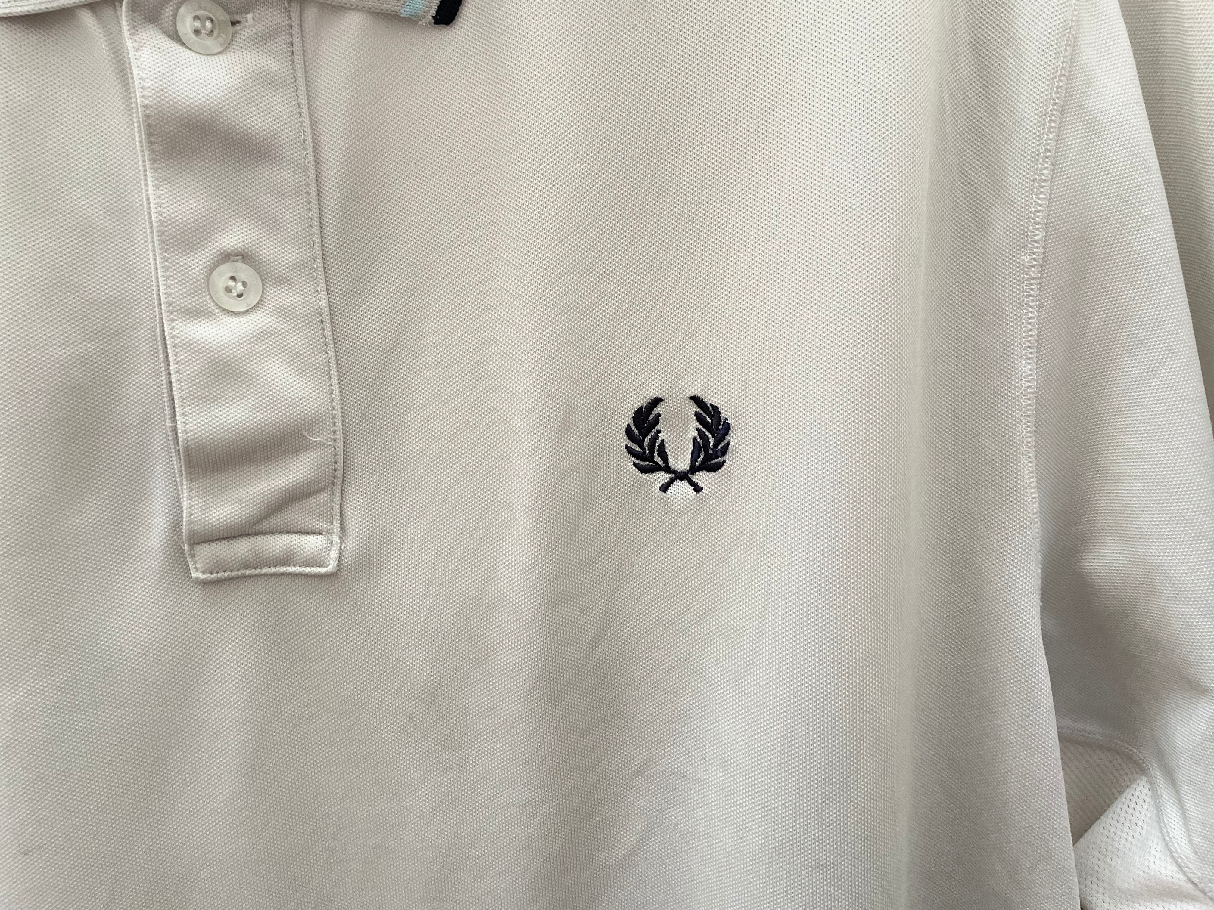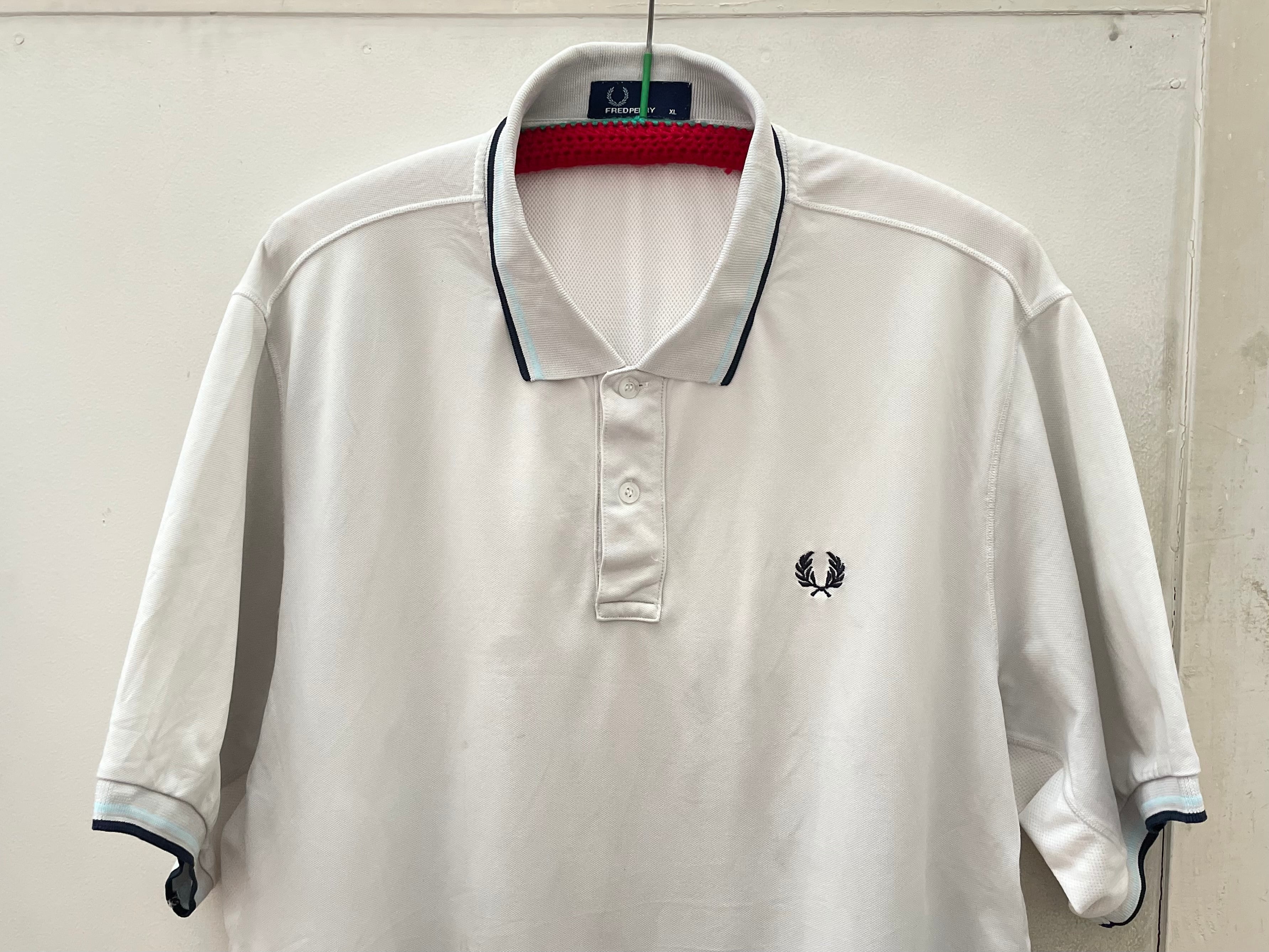 FRED PERRY ラインポロシャツ ホワイト×ブルー系 メンズ 大きめサイズ