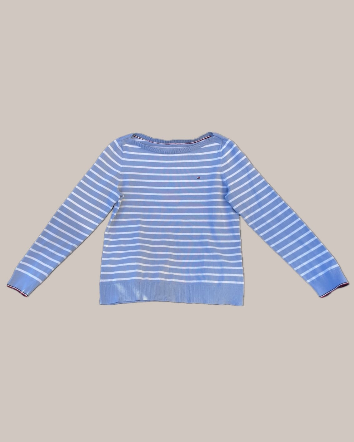 TOMMY HILFIGER ボーダーロンT 水色 ワイドネック トリコロール 長袖