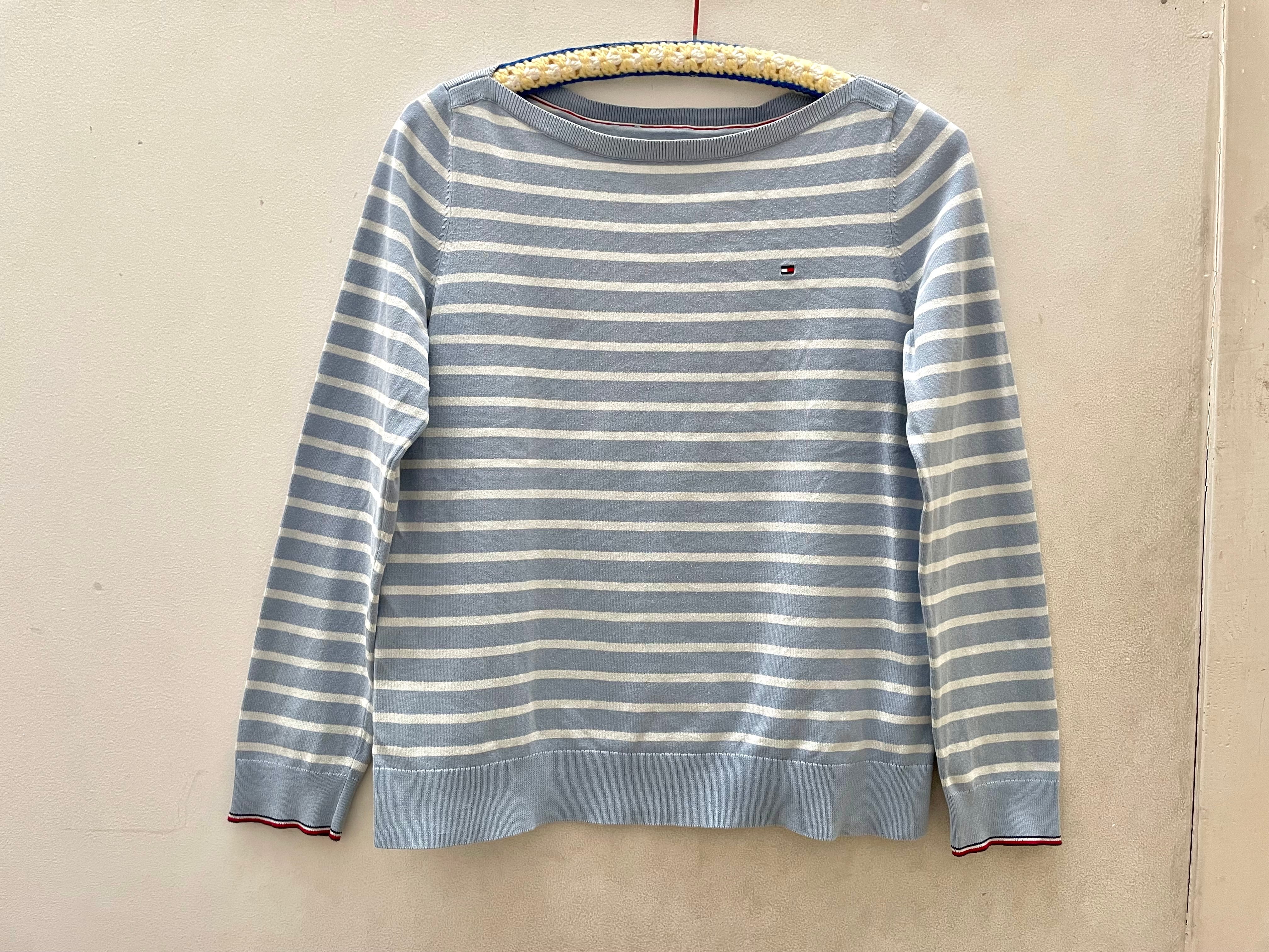 爽やかな水色ベースに細めのボーダーが入った、TOMMY HILFIGERの長袖トップス。